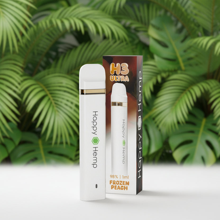 Ideal für unterwegs oder für alle, die ein unkompliziertes, hochwertiges CBD-Vape suchen: Das Happy Hemp H3 Ultra Vape – Frozen Peach vereint modernes Design mit angenehmem Geschmack in einem praktischen Format.